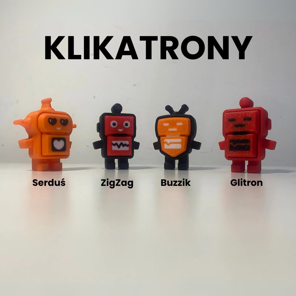 Każdy Klikatron ma swój własny charakter – od uroczego Serdusia 💛 po zadziornego ZigZaga ⚡ – i aż się prosi, by go kliknąć!